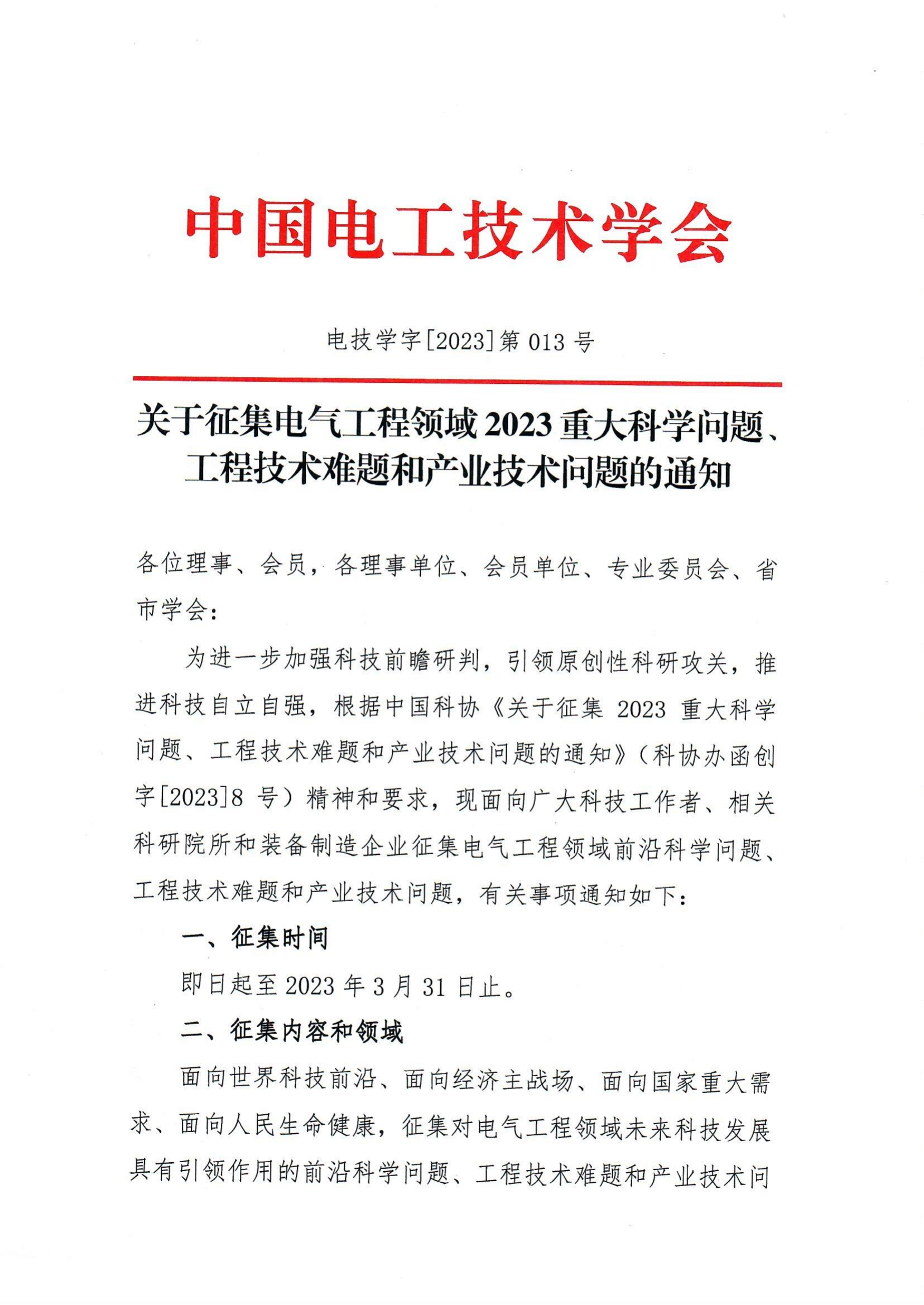 關(guān)于征集電氣工程領(lǐng)域2023重大科學(xué)問題、 工程技術(shù)難題和產(chǎn)業(yè)技術(shù)問題的通知